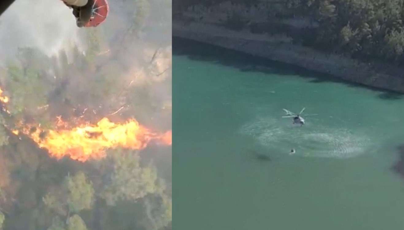 Marmaris’te yangından denize kaçan köpek kurtarıldı