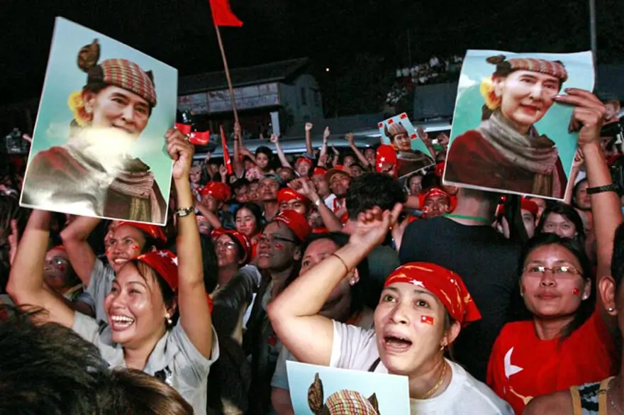 Myanmar’ın demokrasi yanlısı lideri Aung Suu Kyi, hafta sonunda yapılan seçimlerde elde ettiği başarıyla 50 yıllık askeri cunta yönetimine karşı en büyük demokrasi zaferini kazandı.