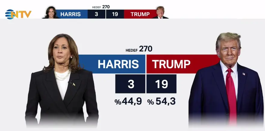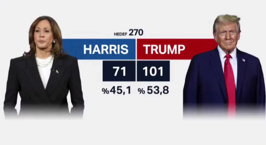 ABD başkanlık seçiminde, 50 eyaletin 35’indeki resmi olmayan sonuçlara göre, Cumhuriyetçi aday Trump 214, rakibi Harris ise 179 delege kazandı.