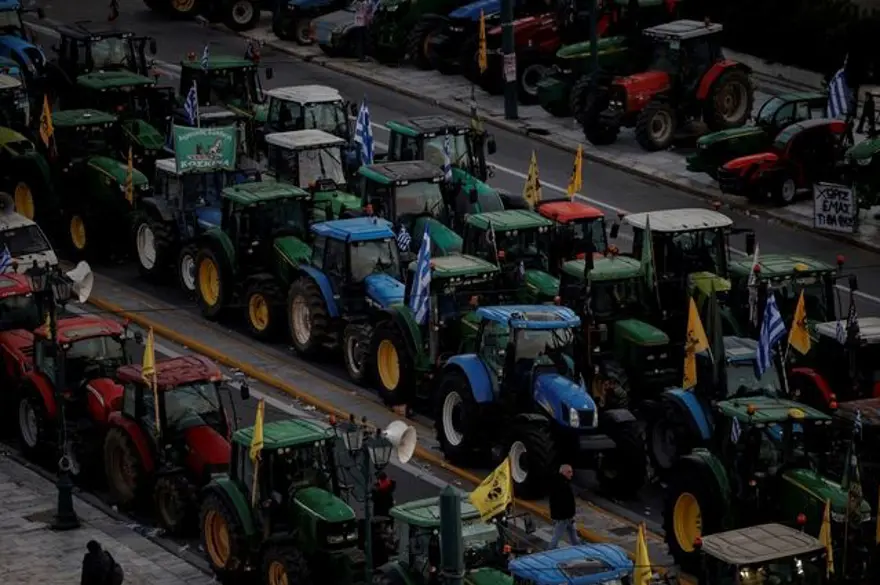 En az 8 bin çiftçi, arıcı ve hayvan yetiştiricisi, dün Sintagma Meydanı'ndaki protestoya katılarak, yüksek maliyetler ve vergiler, bürokrasi, "aşırı" çevre kuralları ile ucuz ithalattan kaynaklanan rekabete tepki gösterdi.