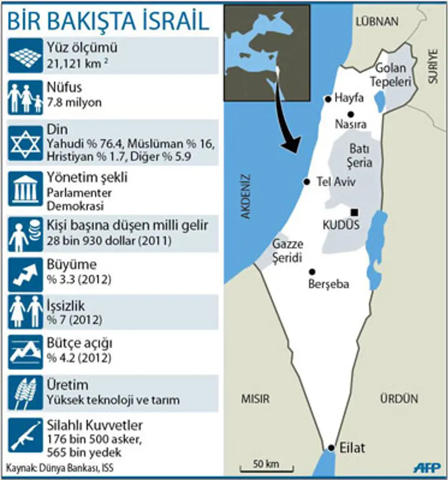 Bir bakışta İsrail (Büyütmek için tıklayın).