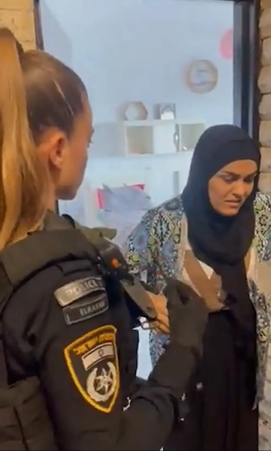 Görüntülerdeki Filistinli kadının polislerin karşısında panik yaşadığı görüldü.