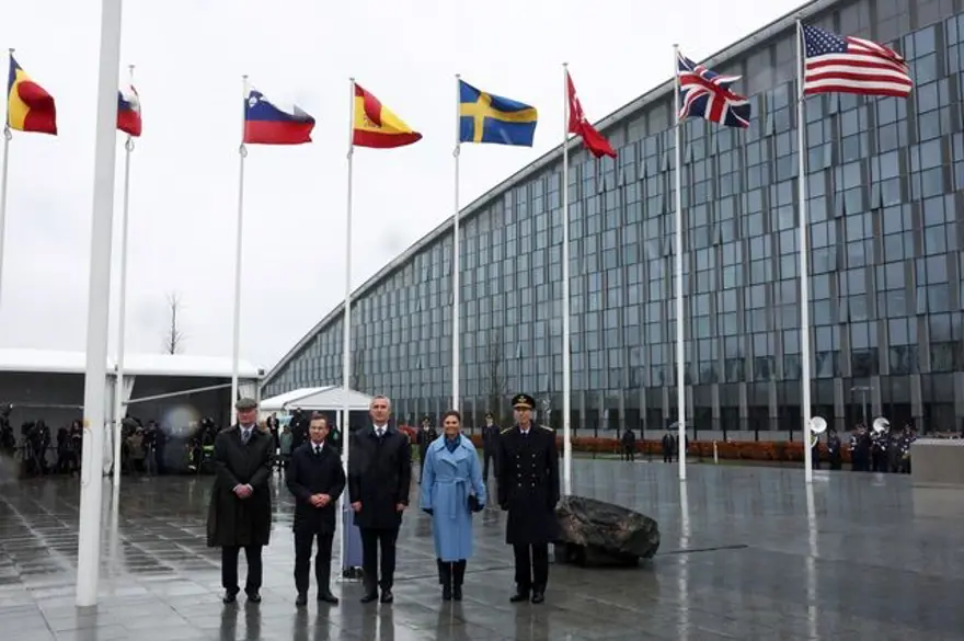 Kuzey Atlantik Anlaşması Örgütü'nün (NATO) 32. üyesi olan İsveç'in bayrağı, ittifakın genel merkezine törenle asıldı.