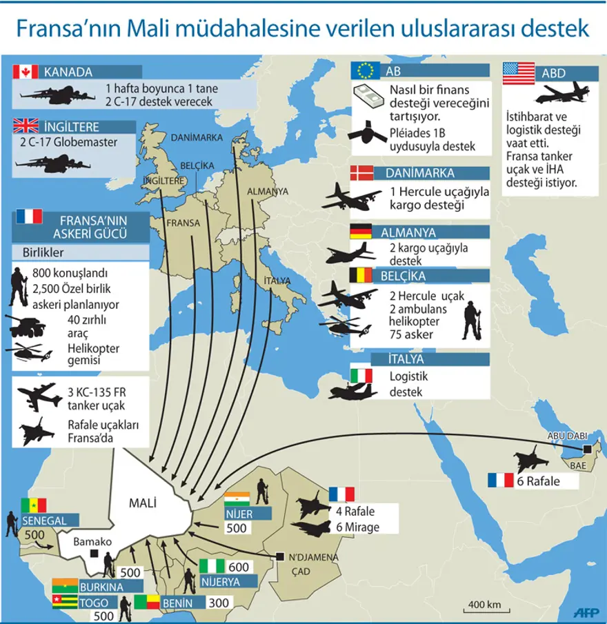 Almanya da Fransa'nın Mali'deki operasyonuna lojistik destek veriyor.