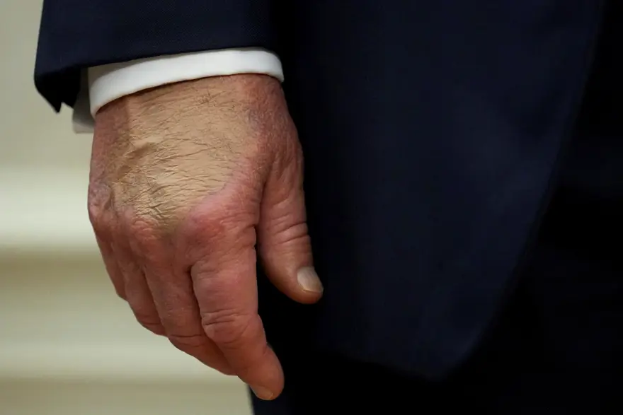 ABD Başkanı Trump'ın elindeki morluk, Beyaz Saray tarafından makyajla gizlenmeye çalışsa da kamuoyunun gözünden kaçmadı.