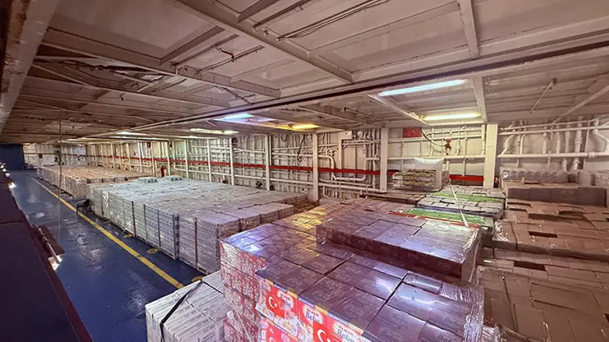 Afet ve Acil Durum Yönetimi Başkanlığı (AFAD) koordinasyonunda ve 17 sivil toplum kuruluşunun desteğiyle hazırlanan yaklaşık 900 tonluk gıda malzemesiyle Mersin'den yola çıkan "Akdeniz" adlı gemide prosedürler tamamlandı.