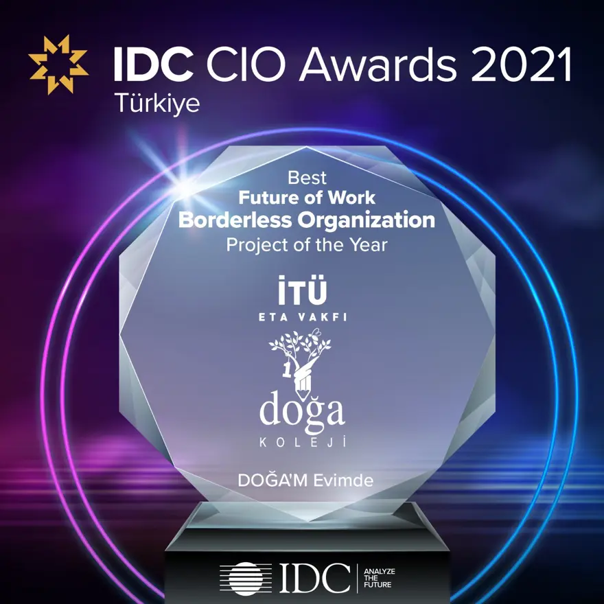 IDC CIO Ödülleri 2021, “Future of Work – Borderless Organization (İşin Geleceği- Sınır Tanımayan Organizasyonlar)” kategorisinde, “Best Borderless Organization of The Year (Yılın En İyi Sınır Tanımayan Organizasyonu)” unvanı ile 1.lik ödülü İTÜ ETA Vakfı Doğa Kolejine verildi.