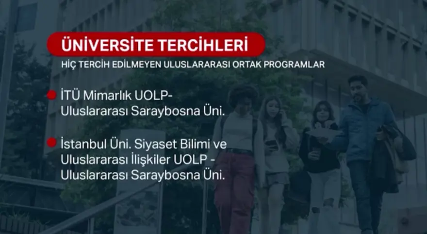 YÖK Atlas verilerine göre uluslararası ortak lisans programında olan 84 bölümü ise tek bir aday bile listesine eklemedi.