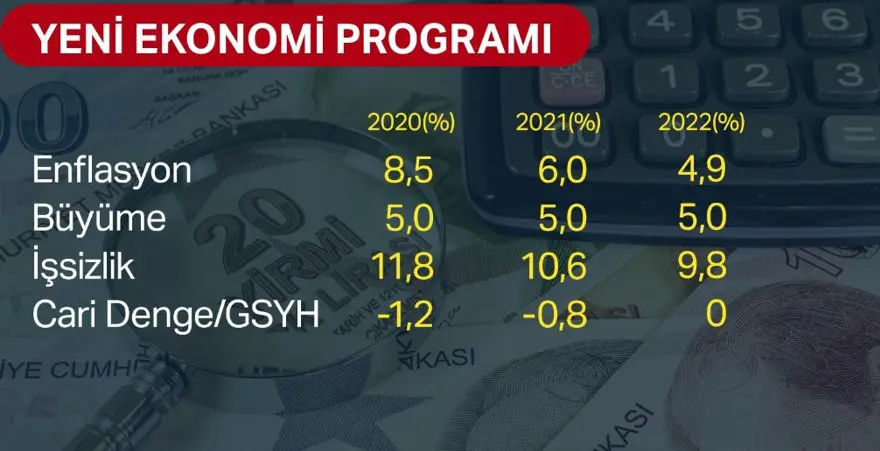 Hazine ve Maliye Bakanı Berat Albayrak, Türkiye'nin 2020-2022 dönemini kapsayan üç yıllık Yeni Ekonomi Programı'nı (YEP) Ankara'da kamuoyu ile paylaştı. Ekonomide gelecek 3 yılın yol haritası niteliği taşıyan 'Yeni Ekonomi Programı'nı açıklayan Bakan Albayrak, bu yılki programın ana temasını 'Değişim Başlıyor' olarak açıkladı. Albayrak, yılı yüzde 12 enflasyon ve yüzde 0,5 büyüme ile kapatmayı hedeflediklerini bildirdi.