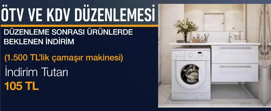 ÖTV beyaz eşya ve elektrikli ev aletlerinde 30 Nisan’a kadar sıfırlandı. Mobilyadaki KDV ise yüzde 8'e düşürüldü. Düzenlemeyle beyaz eşyada yüzde 7-8, mobilyada da yüzde 10 indirim bekleniyor.