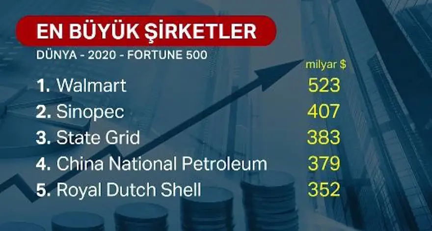 Dünyanın en büyük şirketleri listesinde bu yıl önemli bir değişiklik yaşandı. 30 yıl önce listeye 1 şirket bile sokamayan Çin, bu yıl Amerika Birleşik Devletleri'ni solladı. Listeye Türkiye'den ise tek şirket girebildi.