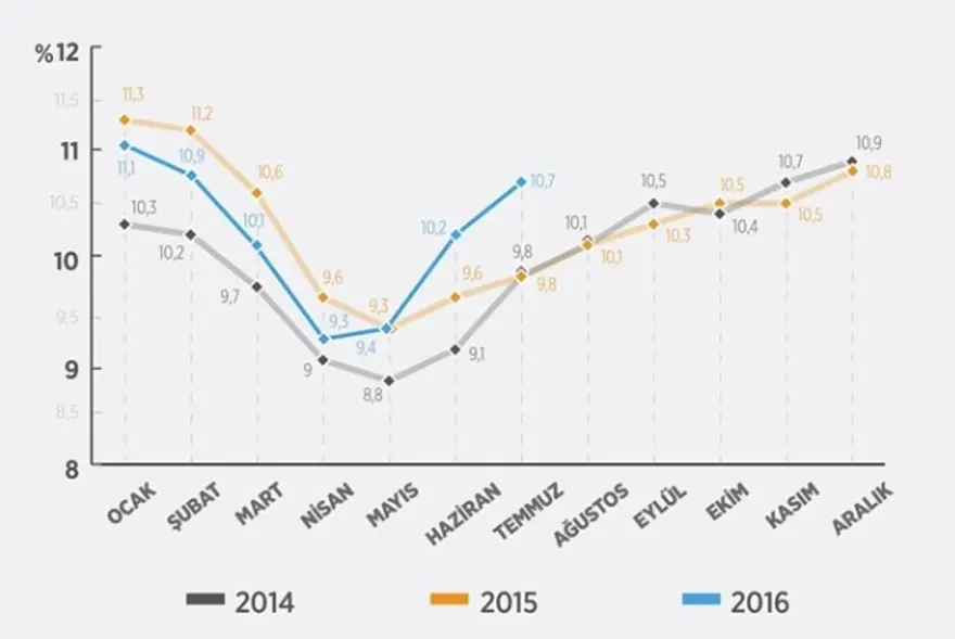 İşsizlik oranı haziranda yüzde 10,2, geçen yılın temmuz ayında ise yüzde 9,8 düzeyindeydi.