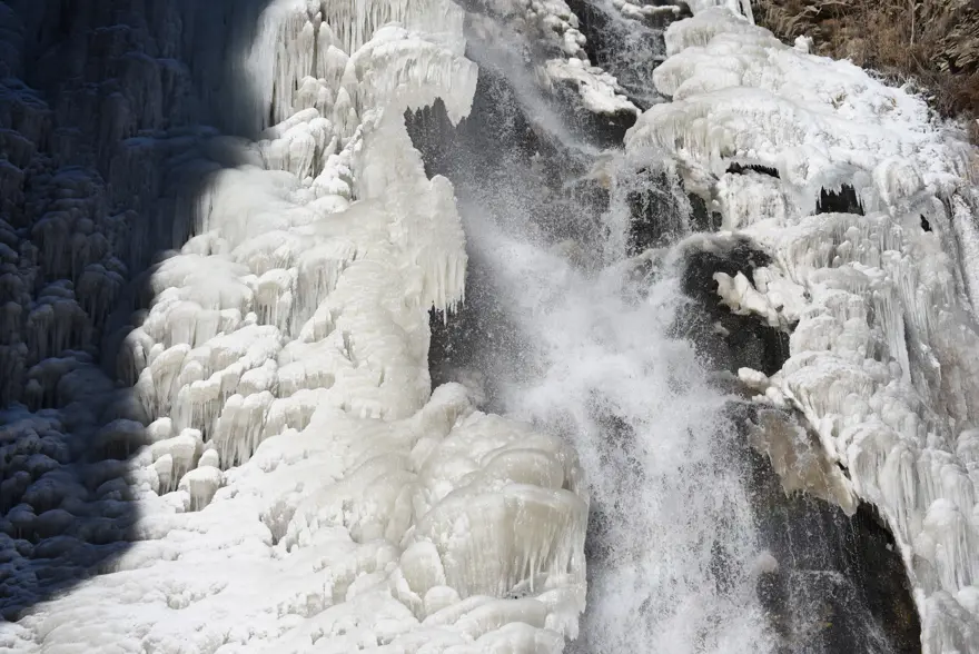 Erzurum, Ardahan ve Kars'ta dondurucu soğuklar devam ediyor. Buz sarkıtlarının oluştuğu şelale, ziyaretçilerine farklı görsel sunuyor.
