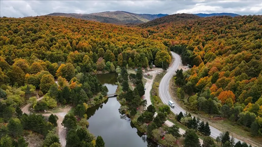 Öte yandan, kayın, meşe ve çam ağaçlarının bir arada bulunduğu Domaniç Dağları’ndaki renk değişimi havadan görüntülendi.