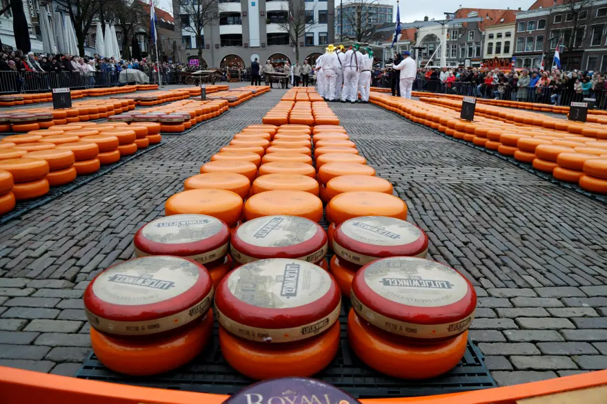 Hollanda'nın Alkmaar kentinin merkezinde bulunan Waagplein'de, geleneksel Hollanda peyniri festivali düzenlendi.