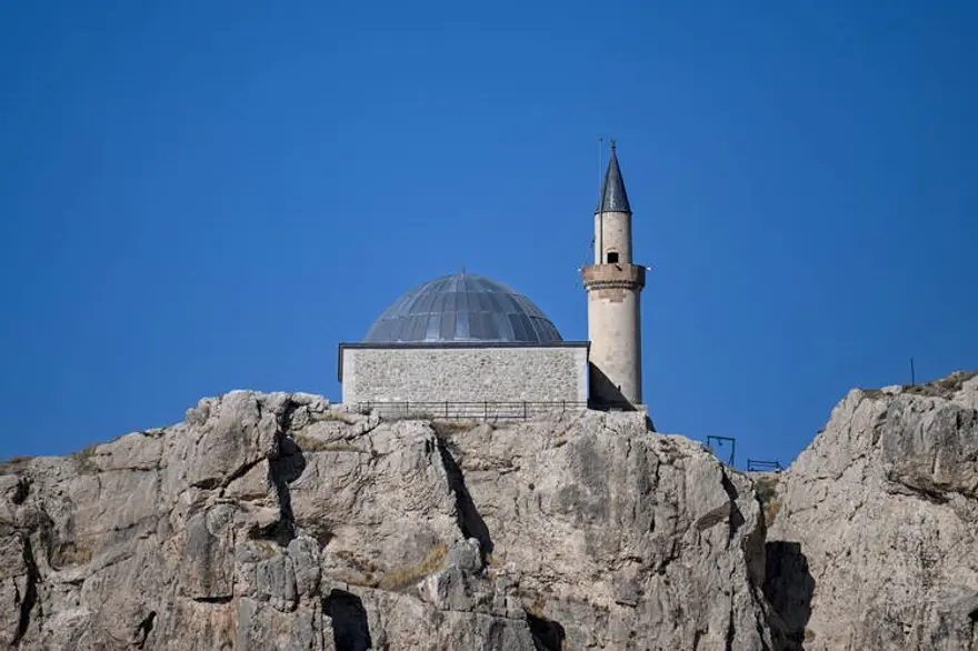 Van Kalesi'nin zirvesindeki tarihi Süleyman Han Camisi, manevi atmosferi ve eşsiz manzarasıyla yerli ve yabancı turistleri ağırlıyor.