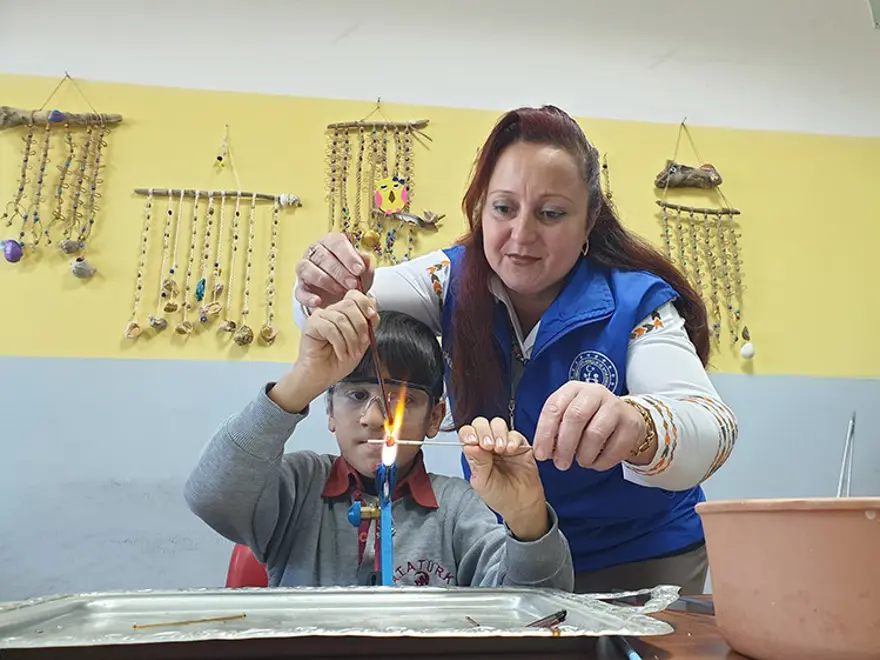 Haftanın 5 günü açık olan ücretsiz kursa katılanlar, cam çubukları ateşte eritip, tespih, süs eşyası, takı ile anahtarlık ve nazar boncuğu gibi objeler yapıyor.