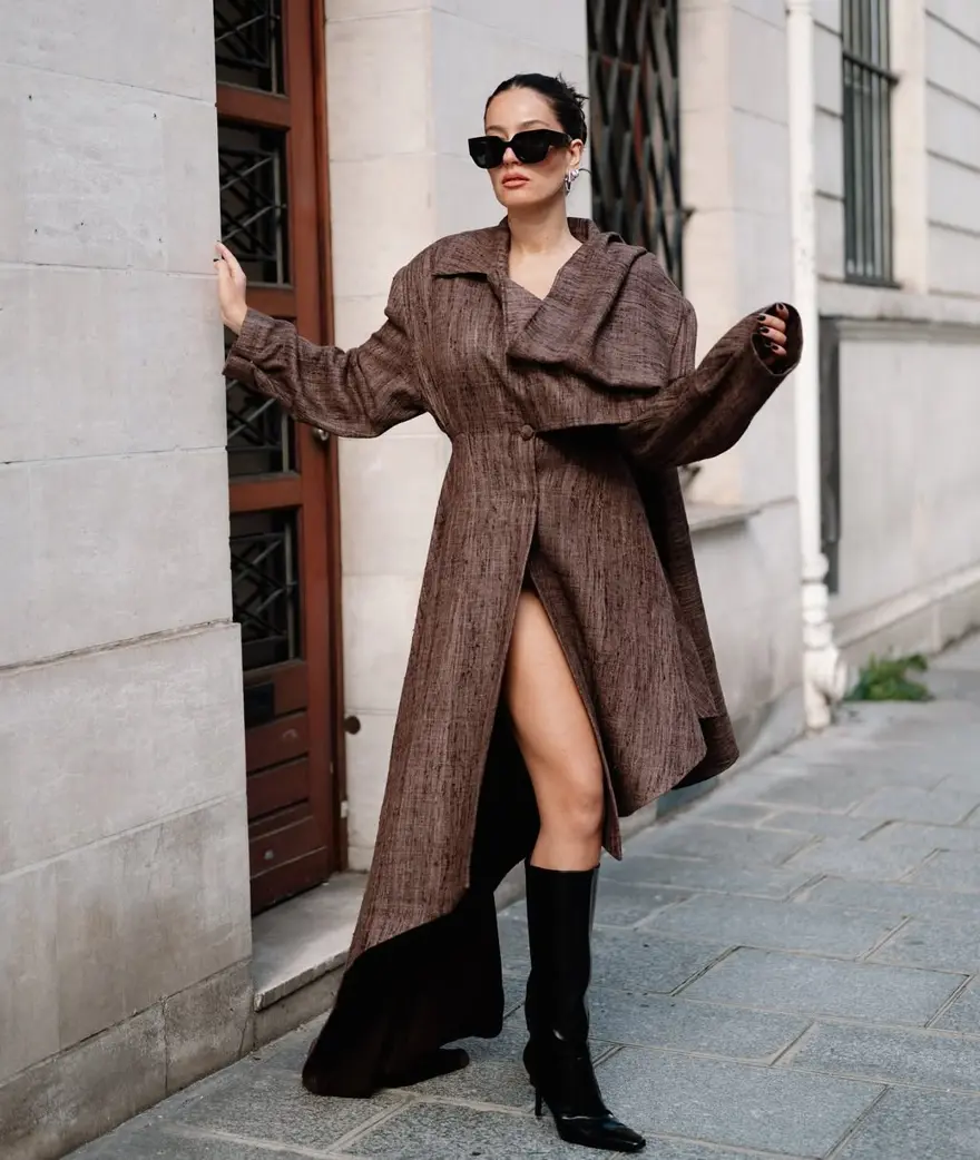 39 yaşındaki Pelin Akil, Paris sokaklarında kahverengi trençkotu ve siyah çizmeleriyle objektif karşına geçti.