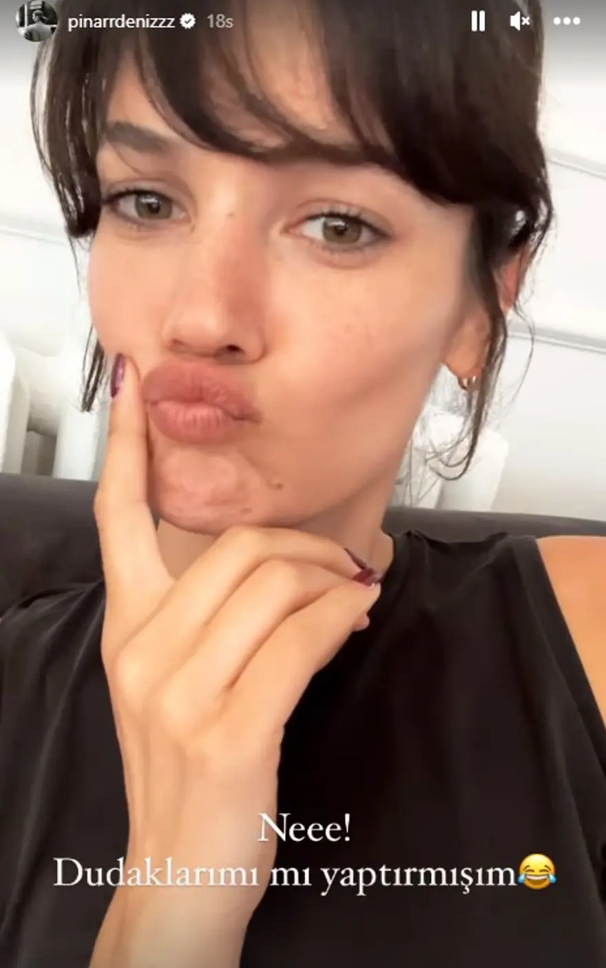 Oyuncu, "Neee! Dudaklarımı mı yaptırmışım?" diyerek esprili bir video paylaştı.