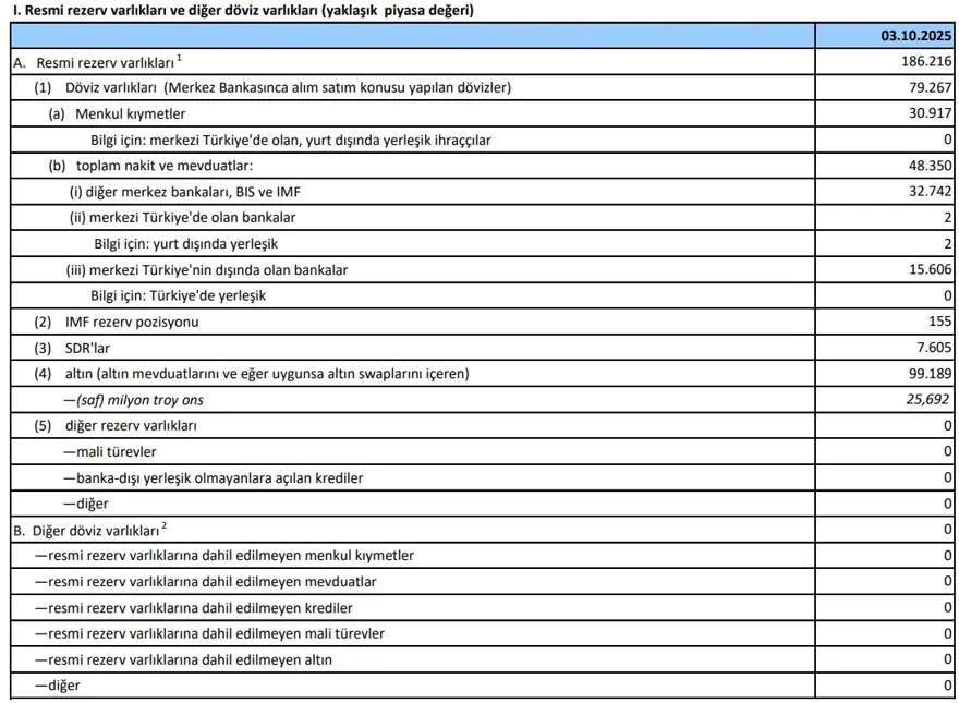 Türkiye Cumhuriyet Merkez Bankası döviz rezervlerini açıkladı. TCMB'nin verilerine göre döviz rezervleri 182 milyar 953 milyon dolardan 186 milyar 216 milyon dolara yükseldi.