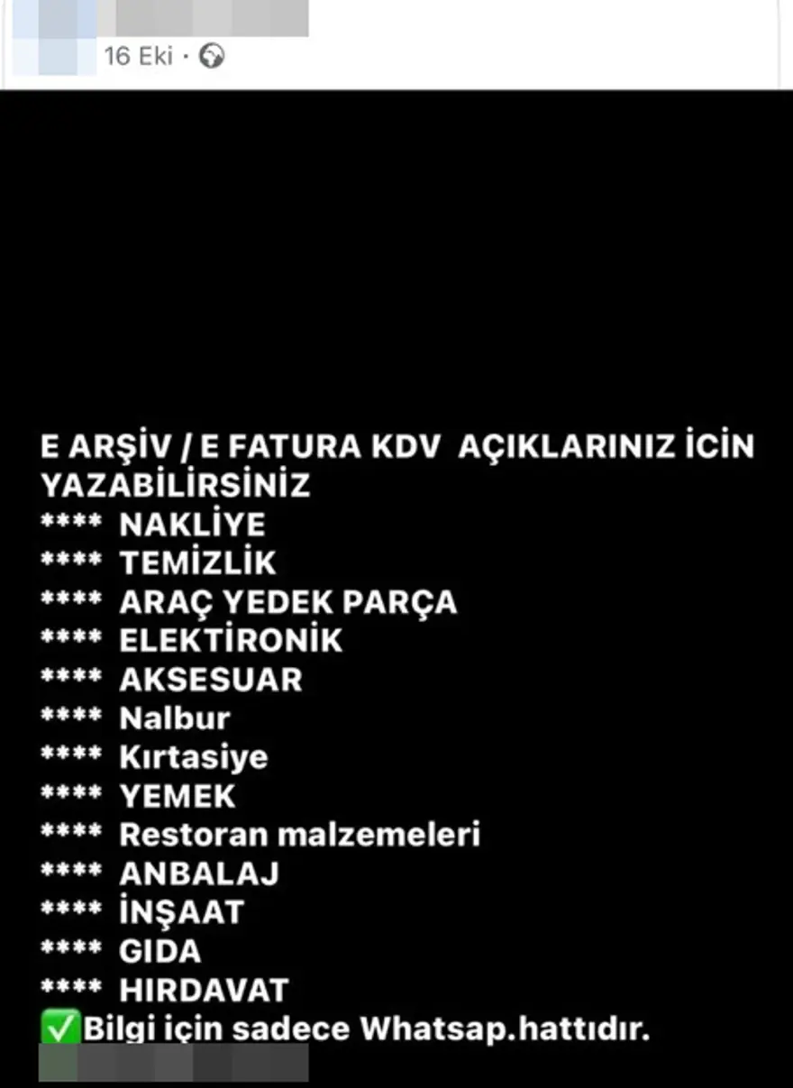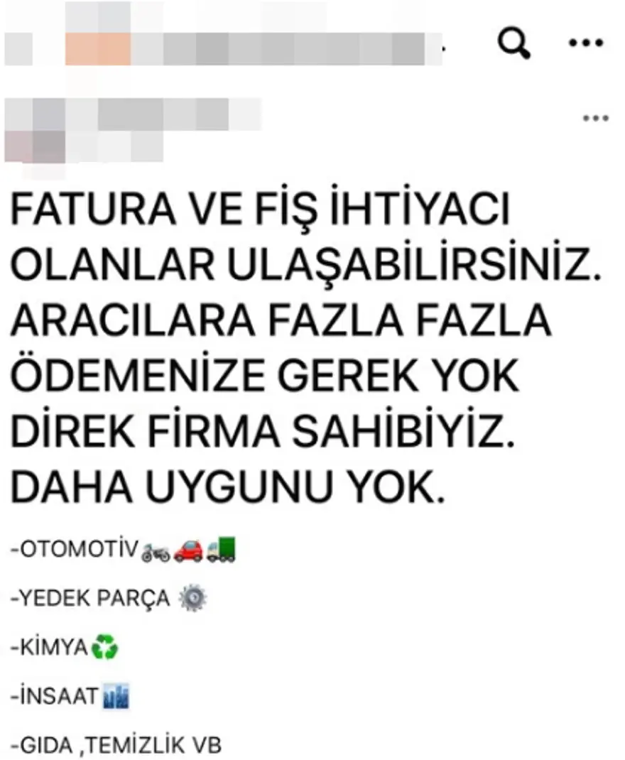Yedek parça faturalarını sadece yüzde 1, e-Fatura olan faturalara da yüzde 3 komisyonla fatura temin edeceğini öne süren kişiler milyarlarca liralık vergi kaybına neden oluyor.