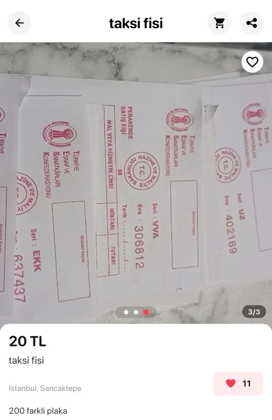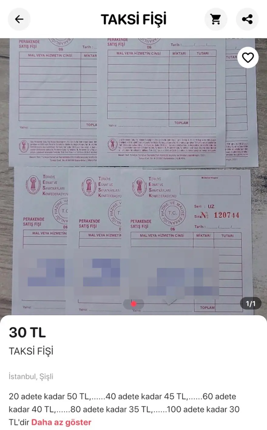 Ticari taksilerin faturaları ilan sitelerinde yasadışı olarak satışa sunuldu. Alan da satan da suçlu duruma düşüyor. Kullanımının tespiti halinde büyük ceza kesiliyor.