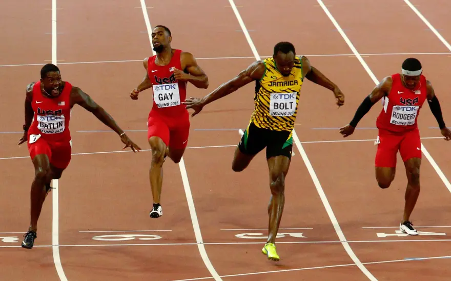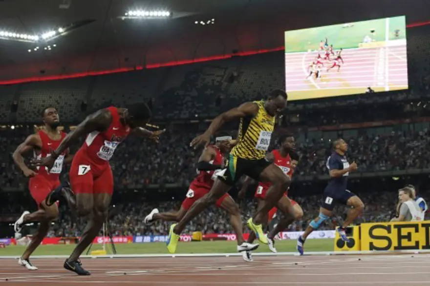 15. Dünya Atletizm Şampiyonası'nda erkekler 100 metrede altın madalyayı, yarışı ABD'li Justin Gatlin'in 0.01 saniye önünde bitiren Jamaikalı Usain Bolt kazandı.