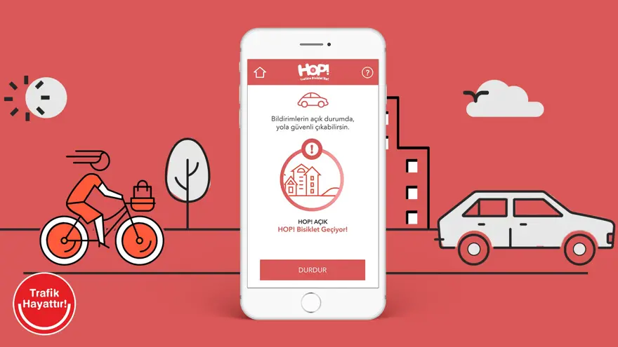 Geliştirilen mobil uygulama, bisikletlilerin trafikte yaşadıkları sorunlara bir çözüm niteliğinde olup aynı zamanda araç sürücüleri için de büyük bir sorumluluğu üstlenmeyi amaçlıyor. HOP! mobil uygulaması hem iOS hem de Android store’lardan indirilebiliyor. Projenin web sitesinden detaylı bilgilere ulaşabileceğiniz gibi, HOP! uygulamasını indirerek projeye destek olabilirsiniz.
