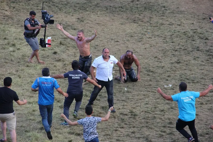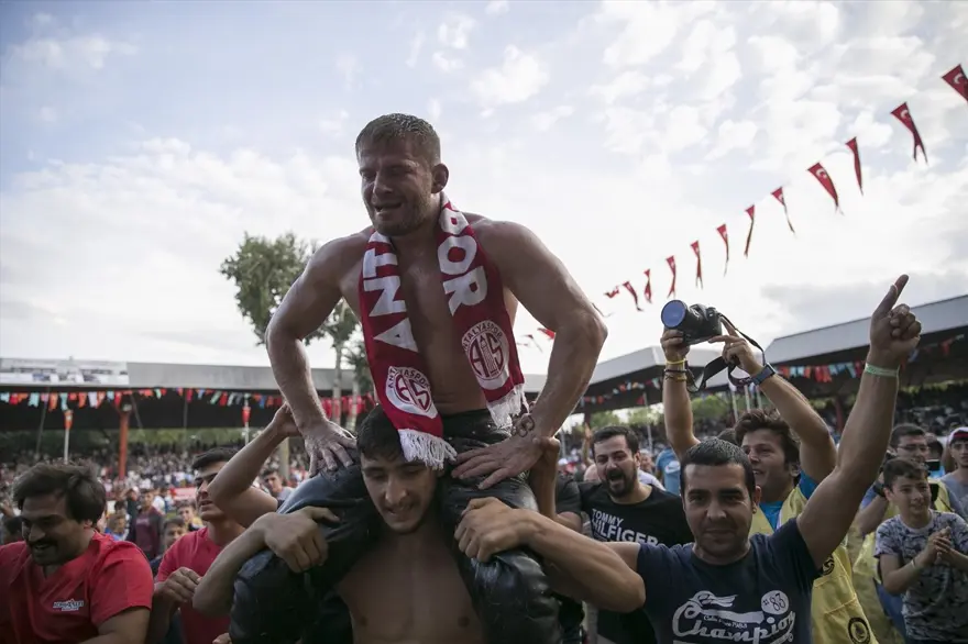 Küçük orta boydan itibaren Kırkpınar'da birçok kez karşı karşıya gelen iki Antalyalı başpehlivan, 656. Tarihi Kırkpınar Yağlı Güreşleri Başpehlivanı olabilmek için peşreve çıktı ve tribünleri selamladı.