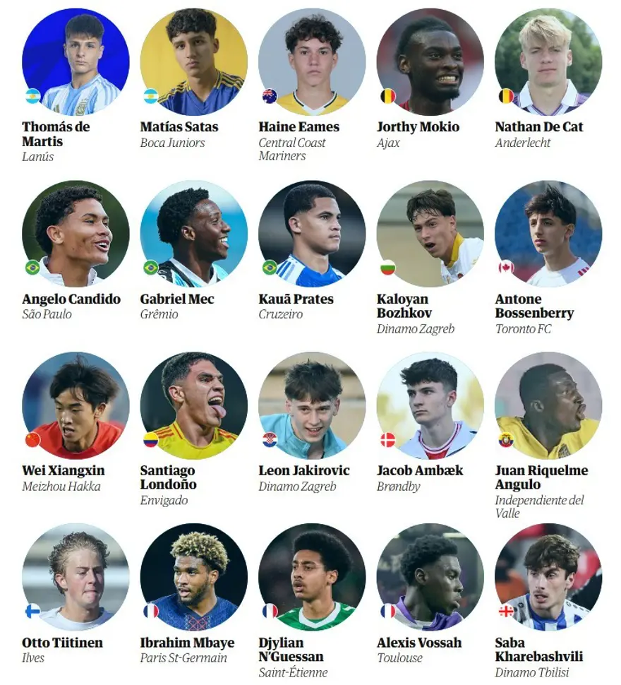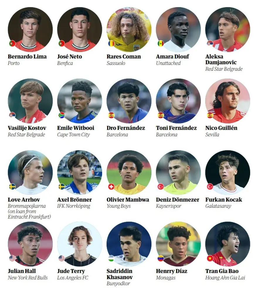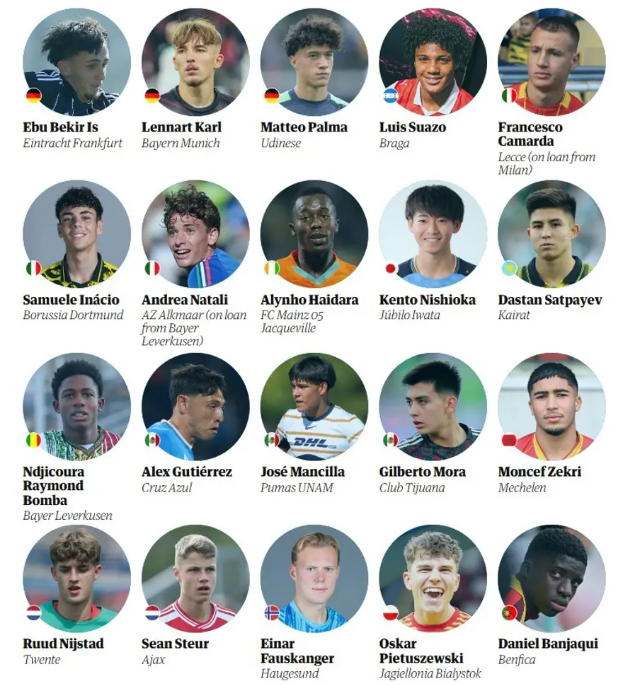 Listede PSG'den Ibrahim Mbaye, Bayern'den Lennart Karl, Dortmund'dan Samuele Inacio, Barcelona'dan Toni Fernandez ve Porto'dan Bernardo Lima gibi isimler yer aldı.