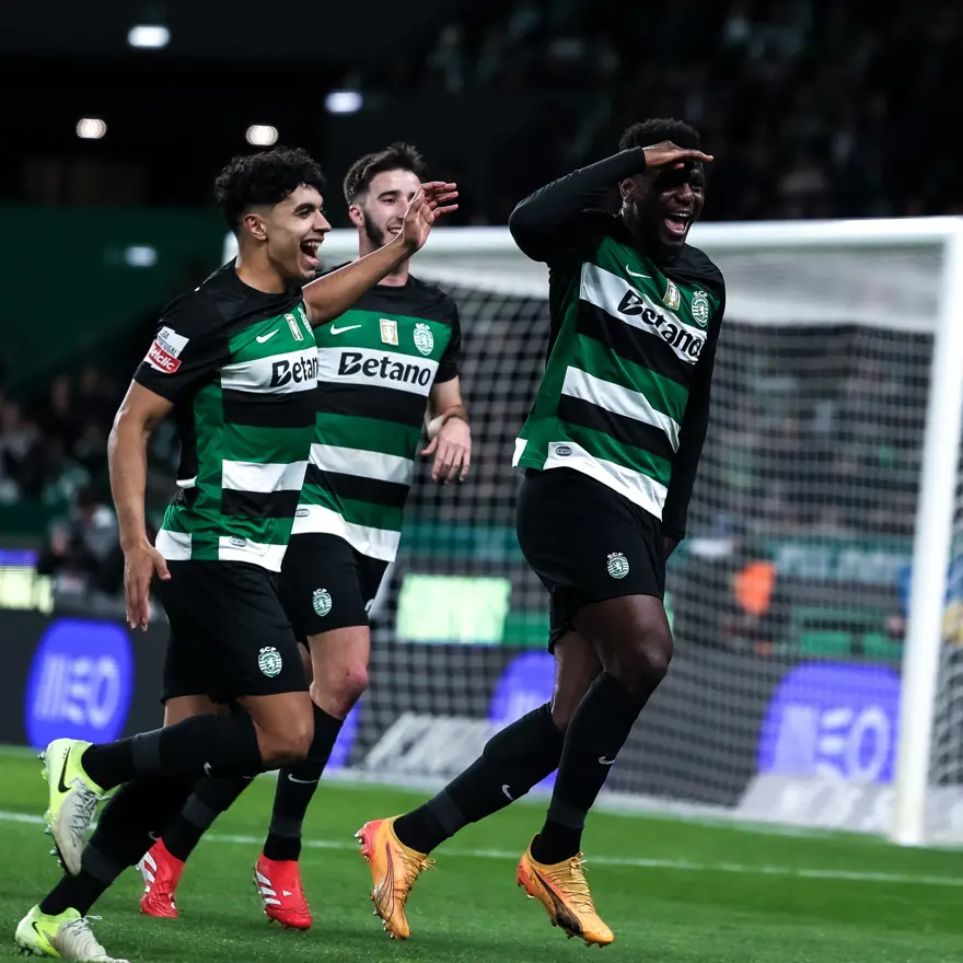 Galatasaray'ın gündemindeki Diomande'nin Sporting formasıyla attığı gol sonrası yaşadığı sevinç.