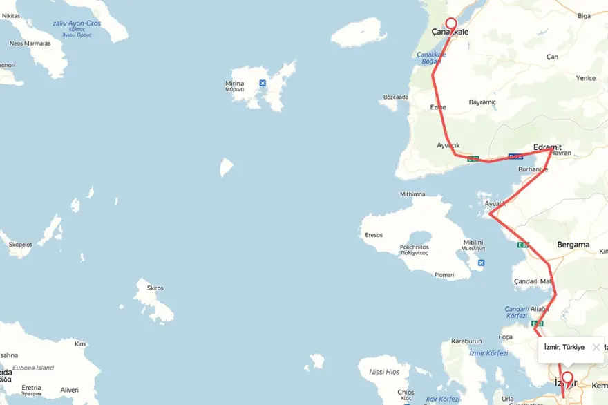 ÇANAKKALE – AYVALIK – İZMİR GÜZERGâHINDA TRAFİK SÜRESİ İSE 270 DAKİKA