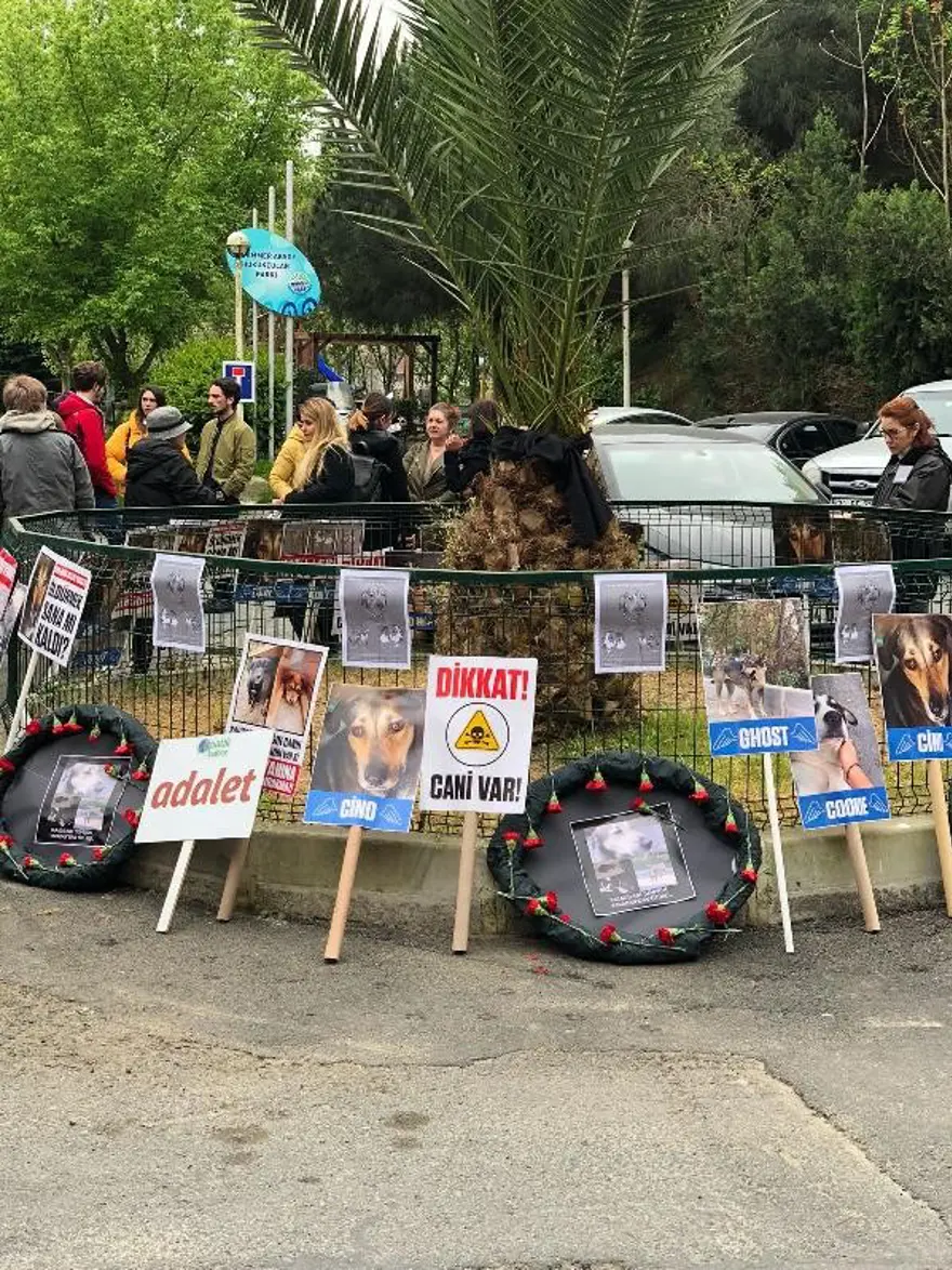 Hayvanseverler ellerinde "Nasıl kıydınız", "İnsanlığı zehirlediler" ve "Öldürmek sana mı kaldı?" şeklinde pankartlar taşıdı.