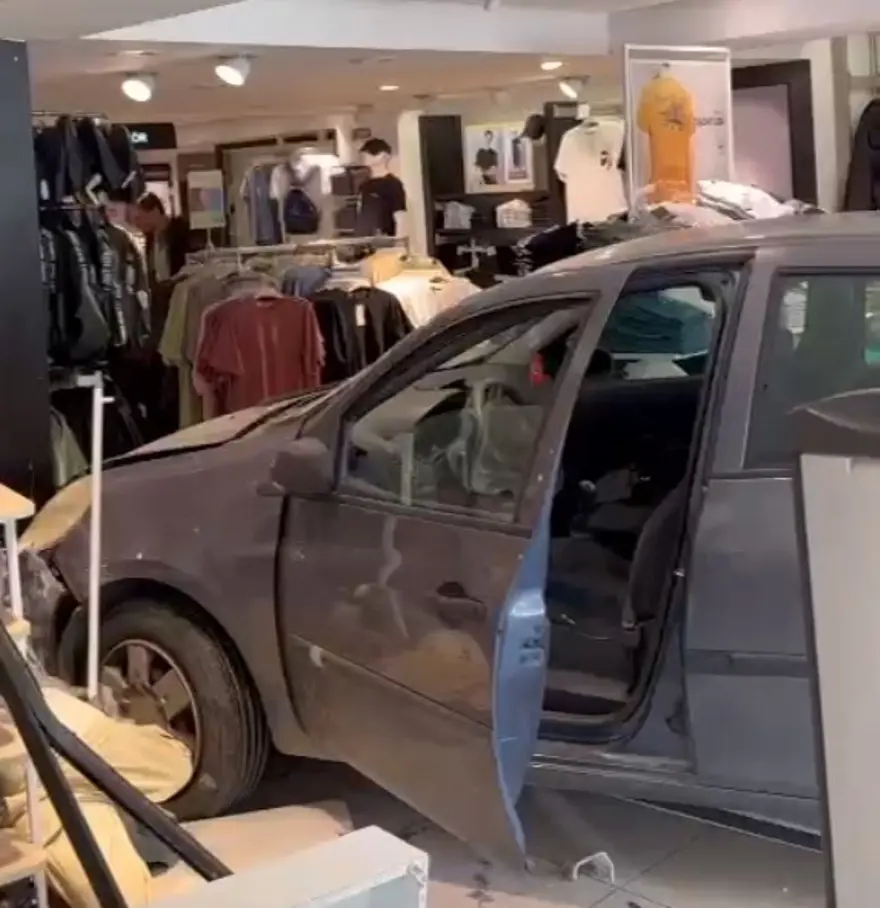 Sürücüsünün kontrolünü kaybettiği otomobil, giyim mağazasının kapısından içeri daldı.