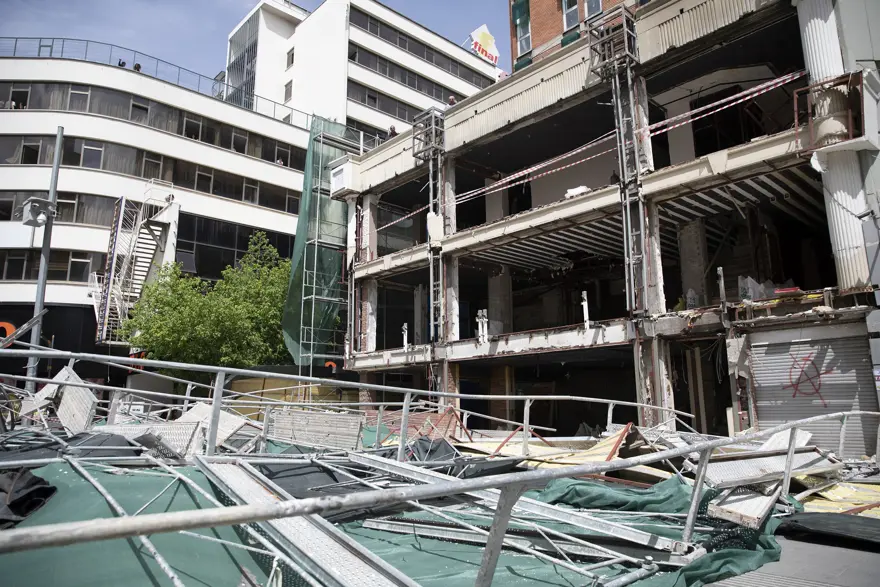 Ankara'nın Çankaya ilçesi İzmir-1 Caddesi'ndeki bir binanın tadilatı için kurulan inşaat iskelesi aniden çöktü.