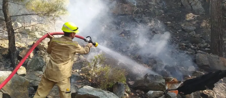 Söndürme çalışmasına 37 arazöz, 328 işçi ve personelin yanı sıra 17 helikopter katıldı. Akşam havanın kararması nedeniyle havadan yapılan müdahaleye ara verildi.