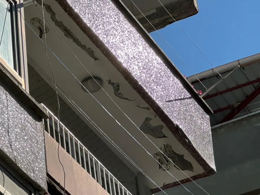 Samsun’un İlkadım ilçesinde 4 katlı bir apartmanın balkonundan kopan sıva parçaları, kaldırıma düştü.