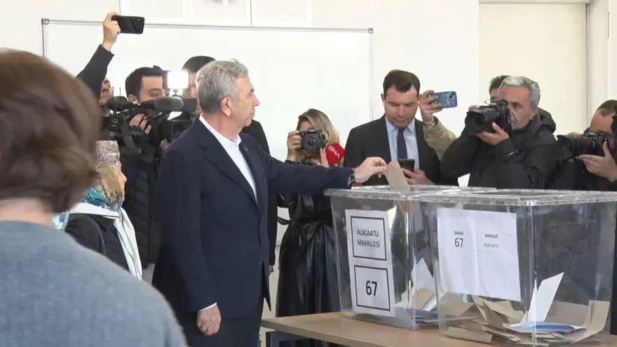Ankara Büyükşehir Belediye Başkanı Mansur Yavaş, Çankaya Belediyesi Ek Hizmet Binası'nda İmamoğlu için oy kullandı.