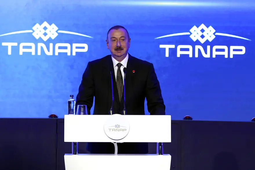TANAP'ın temelini 4 yıl önce attıklarını ancak projeyle ilgili çalışmaların 2012'de (Türkiye Cumhuriyeti Hükumeti ile Azerbaycan Cumhuriyeti Hükumeti arasında Trans Anadolu Doğalgaz Boru Hattı Sistemine İlişkin Hükumetlerarası Anlaşma'yla) başladığını anlatan Aliyev, İstanbul'da yapılan anlaşmayla TANAP'ın yeşil ışığının yandığını belirtti.