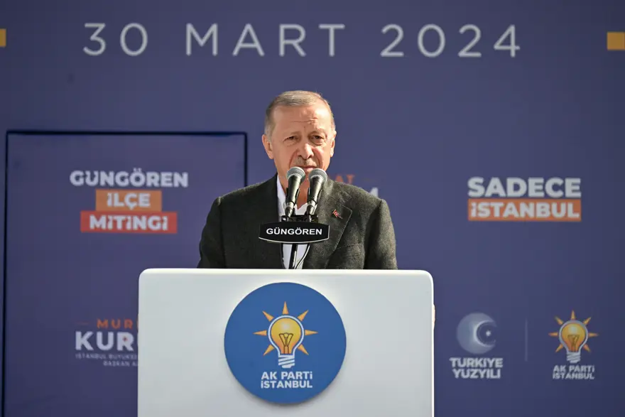 Türkiye, yerel yöneticileri seçmek için yarın sandık başına gidiyor. Seçim çalışmalarını İstanbul'da sürdüren Cumhurbaşkanı Recep Tayyip Erdoğan, muhalefeti eleştirerek "İstanbul'un, CHP'nin algı belediyeciliğiyle bir 5 yıl daha kaybetmeye artık takatinin kalmadığını örnekleriyle anlatacağız. İstanbul'u içine düştüğü bu çöküşten kurtarmaya talibiz." dedi. Sandıklara sahip çıkılması çağrısında da bulunan Cumhurbaşkanı Erdoğan "İnanıyorum ki yarın akşam Murat kardeşimi tercih ettiğiniz anda, pazartesi gününden itibaren İstanbul bir başka yöne açılacak." diye konuştu.
