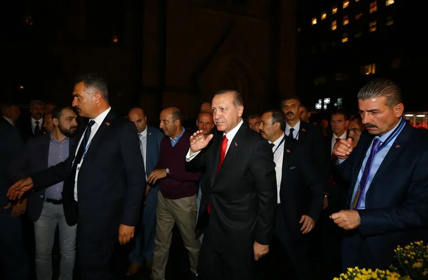 Resepsiyon sonrasında ellerinde Türk bayrakları bulunan ABD'de yaşayan Türkler, Erdoğan ve eşi Emine Erdoğan'ı konakladıkları otelin çevresinde bekledi.