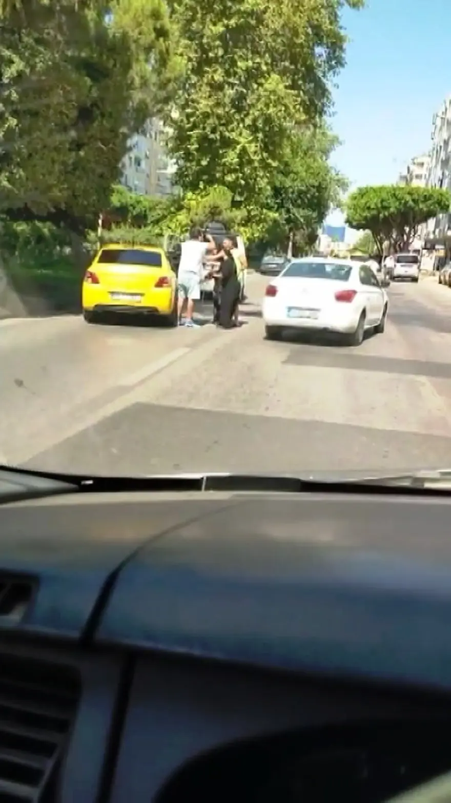 Antalya'da taksi ile yolculuk yapan kişinin önü, husumetlileri tarafından kesildi. Olay anında ne yapacağını bilmeyen yolcu, taksi şoförünün araçtan inmesiyle taksiyi kaçırdı.