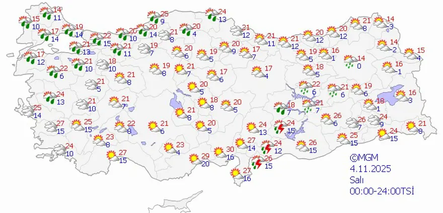 - Denizli 25 derece.