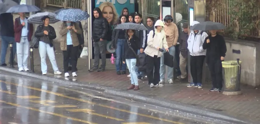 Yağış nedeniyle otobüs duraklarında da yoğunluk oluştu.