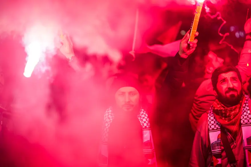 İsrail'in Gazze saldırılarının 2. yılında, İstanbul'daki İsrail Konsolosluğu önünde toplanıldı.
