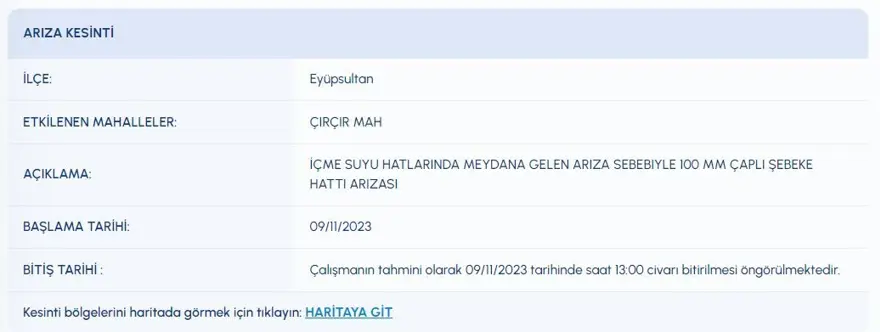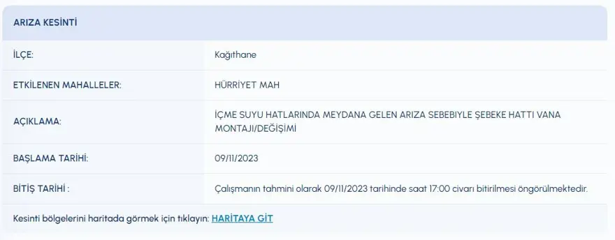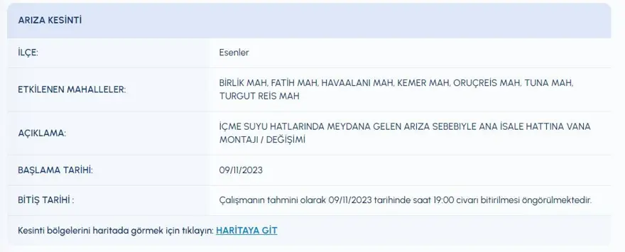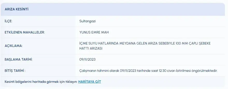 9 KASIM SU KESİNTİSİ PROGRAMI
