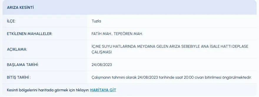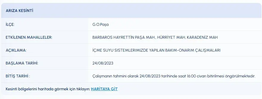 HANGİ İLÇELERDE SU KESİNTİSİ YAŞANACA?