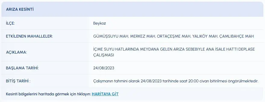 İstanbul'un 6 ilçesinde su kesintisi (Bayrampaşa, Beykoz, Gaziosmanpaşa, Pendik...) Sular ne zaman gelecek?