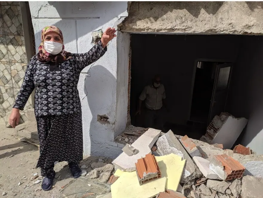 Kazada evinin duvarı yıkılan Emine Kızılçınar ve Aslan Kızılçınar çifti, evinin bulunduğu sokakta sürekli kaza riski olduğunu söyleyerek çözüm bulunmasını istedi.