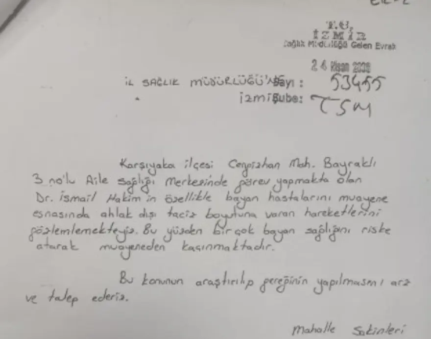 İsmail Hakim hakkında, 2018 yılında da İzmir’in Karşıyaka ilçesi Cengizhan Mahallesi'nde aile sağlığı merkezinde görev yaparken muayeneye gelen hastalara cinsel tacizde bulunduğu iddia edildi. 37 kişinin bir araya gelip, imza atarak İzmir İl Sağlık Müdürlüğü'ne ihbar dilekçesi verdiği tespit edildi.
